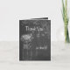 Cartão de agradecimento - Casamento Jardim Jar de Giz - em fonte tipográfica moderna, mas casual. Um jarro de pedreiro cheio de flores e uma borboleta em um desenho de giz em um fundo de quadro negro.
