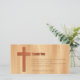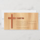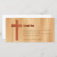 Obrigado cristão moderno customizável da simpatia você cartão com fotos na posição horizontal com fundo de madeira claro (a imagem digital) com cruz de madeira e agradece-lhe com a mesma cor (+ uma sombra clara da gota). Você pode facilmente mudar a cor de texto, a pia batismal, o tamanho e a posição clicando o botão da personalização. Disponível no cartão com fotos vertical, cartão de nota (vertical e horizontal). Combinando outros produtos fúnebres.