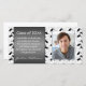 Anúncio preto e branco/obrigado da graduação do teste padrão do almofariz você cartão com fotos. Personalize adicionando suas foto e informação pessoal.