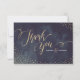 Glamor gold lettering calliografia em "obrigado" design e pontos dourados confetti no fundo escuro marinho céu noturno aquarela, efeito brilhante metálico de ouro, moderno, chico, limpo e elegante, perfeito para casamento vintage ou casamento no inverno à noite. Personalize seu próprio cartões de agradecimentos para o seu casamento! Veja todas as peças correspondentes nesta coleção de caligrafia de glitter de ouro da noite de Glam abaixo.