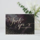 Glamor gold lettering calliografia em "obrigado" design e pontos dourados confetti no céu negro escuro cor d'água, brilho falso efeito metálico de brilho dourado, moderno, chic, limpo e elegante, perfeito para casamento vintage ou casamento no inverno à noite. Personalize seu próprio cartões de agradecimentos para o seu casamento! Veja todas as peças correspondentes na coleção abaixo.