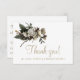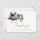 Flores brancas e marfim elegantes de inverno clássicas, buquês com folhagem e ramos sazonais e um roteiro de caligrafia manuscrito de ouro, fazer de um belo obrigado de casamento, seu simples cartão. +++++++++++ Fácil de personalizar com o seu texto em ambos os lados! +++++++++ Perfect para outono tardio ou casamentos florais de inverno.