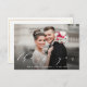 Um cartão com fotos de casamento moderno com uma foto maravilhosa e um roteiro elegante e branco. Adicione uma obrigado pessoal que você enviar e você pode carregar sua própria foto de casamento.