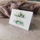 Este cartão de agradecimento de dama de honra em eucalipto dourado e verde é perfeito para um casamento simples. O design apresenta folhas e flores verdes, douradas e azuis pintadas à mão em aquarela, elegantemente dispostas em buquês e molduras geométricas.