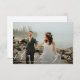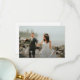 Um belo design de roteiro com uma foto maravilhosa da noiva e do noivo. A imagem, a cor e o texto da nova versão podem ser personalizados. Adicione um obrigado pessoal que você envia no verso.