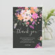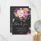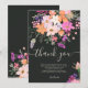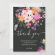 Adicione seus cartões de agradecimento personalizados ao seu bebê ou chá de panela com esta original, linda país flores silvestres em rosa pastel, roxo, laranja e flores e folhas verdes em fundo escuro editável