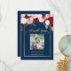 Cartão De Agradecimento Obrigado Foto Casamento Floral Azul Marinho Borgon
