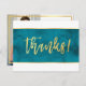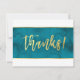 Cartão De Agradecimento OBRIGADO FOTO moderno azul turquesa dourado script