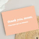 Este simples e engraçado cartão inclui o texto "obrigado sua mãe, eu me tornei incrível" em uma tipografia moderna e desajeitada em um fundo cor de pêssego da moda.