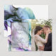 CARTÃO DE AGRADECIMENTO COM FOTO | Espirais fluidas e abstratas de tinta aparecem como fumaça ou vapor intensamente coloridos - em tons de roxo ultra violeta, índigo e azul-esverdeado. Uma moldura dourada com preenchimento esfumaçado translúcido é onde seus detalhes serão inseridos. Este é um design abstrato único criado para a BarefootBride™ por © WhimsicalArtwork™. Personalize o texto, estilo de fonte, cor e tamanho. Criamos este modelo para facilitar a personalização com suas próprias informações. Esta é parte de uma Suite de Papelaria de Casamento completa com papelaria de casamento, chá de bebê e outros eventos projetados por © WhimsicalArtwork™.