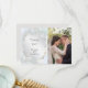 Adicione sua Foto - Um fundo luminoso azul gelo brilhante com folhas de rosa luminosas, folhas de eucalipto, gipsófila e brilhos cintilantes. O verso é uma cor complementar coordenada. Este design fica especialmente bonito na escolha de papel Pérola Brilhante. Personalize o texto, estilo de fonte, cor e tamanho. Criamos este modelo para facilitar a personalização com suas próprias informações. Esta é parte de uma Suite de Papelaria de Casamento completa com papelaria de casamento, chá de bebê e outros eventos. Arte Original © por WhimsicalArtwork™.