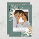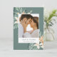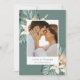 Expresse sua gratidão com estilo com este cartão de agradecimento de casamento com foto floral tropical lindamente desenhado. Com folhas tropicais verdes exuberantes e acentos florais vibrantes, este cartão irradia vibrações quentes de ilha, tornando-o a maneira perfeita de agradecer aos seus entes queridos por compartilharem o seu dia especial.