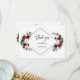 Elegante design de cartão com lindos buquês de flores em aquarela burgundy, merlot e azul marinho, uma forma de diamante duplo, sobre branco e no verso as mesmas flores sobre um fundo azul marinho. Poderia ser uma ótima escolha para qualquer casamento de estação, especialmente para casamentos de outono e inverno. Use a ferramenta Personalizar para adicionar suas informações e fazer alterações. Para itens correspondentes, visite minha Coleção Floral Geométrica Merlot Navy.