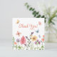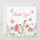 Tipografia laranja personalizável de agradecimento sobre uma ilustração adorável e delicada de flores silvestres e borboletas em aquarela na frente, e personalizável para um dia lindo, com amor, verdadeiramente seu com uma moldura de padrão de flores silvestres.