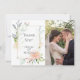 CARTÃO DE AGRADECIMENTO COM FOTO | Alegres flores de primavera em cores pastéis ou coral, rosa e marfim com folhagens em tons pastéis, O verso é uma cor coordenada complementar. Personalize o texto, o estilo da fonte, a cor e o tamanho. Criamos este modelo para facilitar a personalização com suas próprias informações. Esta é parte de uma Suíte de Papelaria de Casamento completa com papelaria de casamento, chá de bebê e outros eventos projetados por WhimsicalArtwork™.