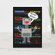 Um robô cinza fica em frente às palavras obrigado que você fez em línguas estrangeiras como espanhol, italiano e francês contra fundo negro. As palavras Bleep! Na frente e na dentro são personalizáveis!