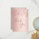Um fundo de aparência metálica falsa rosa dourado. Com rosa dourado, estrelas espumantes de cor de cobre. Na frente, um grande e escuro, rosa dourado, escrita à mão, colorida, e o texto: Obrigado. Back: Modelo para sua nota de agradecimento e seu nome.