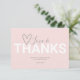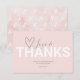 Diga obrigado aos amigos e familiares com este simples cartão de agradecimento com tema do Dia dos Namorados. O design apresenta as palavras Amor e Agradecimento em tipografia de letra manuscrita moderna e trendy com uma fonte moderna e negrita e coração sobre um fundo rosa pálido. O cartão reverte para um padrão elegante de x e o em aquarela. Para ver o conjunto de convites correspondente, visite www.zazzle.com/dotellabelle.