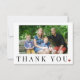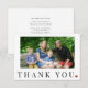 Modelo de cartão de agradecimento com foto personalizada com tipografia moderna minimalista com mensagem em preto e branco simples com um pequeno coração vermelho, Fácil de personalizar com sua foto e detalhes e adaptar o texto às suas necessidades.
