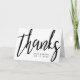 Lindos cartões de agradecimento com uma elegante tipografia caligráfica na frente com um fundo branco simples. Dentro do cartão há um espaço para a sua mensagem única.