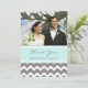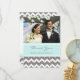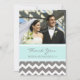 Obrigado feito sob encomenda da foto do casamento você para os cartões de presente no teste padrão claro elegante de azul de turquesa, de cinza de carvão vegetal, e branco moderno e do divertimento da viga de ziguezagues. Inteiramente customizável, frente e verso, disponível em muitos produtos de harmonização para todas suas necessidades do casamento ou do partido. Contacte-nos para pedir uma mudança da cor ou para projetá-la.