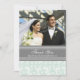 Obrigado feito sob encomenda da foto do casamento você para os cartões de presente no teste padrão floral clássico pastel claro elegante do verde da hortelã, o cinzento e o branco do damasco do vintage. Inteiramente customizável, frente e verso, disponível em muitos produtos de harmonização para todas suas necessidades do casamento ou do partido. Contacte-nos para pedir uma mudança da cor ou para projetá-la.