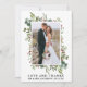 A Elegante Watercolor Winter Greenery Wedding Photo Cartões de agradecimentos inclui folhas de eucalipto e bagas brancas.