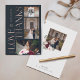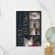 Cartões de agradecimentos de fotos de casamento, elegantes e românticas, com nossas elegantes flores de aquarela pintadas. Lindos arranjos florais arrojados, com azul-marinho rico e robusto, flores com sotaques de folhas verdes e verde-luxuosas. Apresenta três fotos para mostrar suas lindas fotos de casamento. "Love & Obrigado" é exibido em um elegante design de tipografia rosa dourada faux com nome e data bem arranjados. O verso apresenta uma foto de solteiro com elegante quadro de rosa dourado faux e sotaques florais. Espaço abaixo da foto para escrever a sua própria mensagem personalizada. Florais de aquarela pintados por moodthologia.