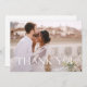 Este simples e elegante cartões de agradecimentos de casamento mostra sua foto favorita de casamento, com a moderna tipografia decorativa branca que diz "Obrigado."