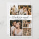 O Elegante "Obrigados Tão" Roteiro Foto Colagem De Casamento Obrigado Cartões. Cartões de agradecimentos de casamento moderno e mínimo com cinco (5) fotos na frente e uma (1) foto no verso. Com o texto "Obrigados Tão" em uma bela letra de escrita tipográfica escrita com letras de mão em preto sobre fundo branco. Costumar o seu nome, fotografias e obrigado. Se preferir escrever manualmente a sua nota, basta eliminar o texto de amostra para obter mais espaço. Por favor, entre em contato comigo se precisar de ajuda com este design.