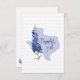 Texas, bluebonnets e um pequeno charme sulista. Estado do Texas, em roxo suave, com um caule de bluebonnet solteiro e o texto "Obrigados, Y'all". O padrão de fevron desenhado à mão pálida no fundo. O verso da placa tem uma versão pequena do estado e personalização com seu nome. Altere o texto na frente para fazer o cartão funcionar para qualquer ocasião que lhe convém. Excelente por anunciar em movimento, obrigado cartas, salve a data, anúncios de bebês e muito mais. Produtos correspondentes disponíveis.