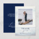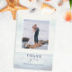 Diga obrigado a você com este oceânico inspirado em design com um fundo oceânico a aquarela com uma âncora e uma foto do seu casamento.