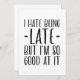 Odeio estar atrasado, mas sou tão bom nisso