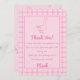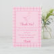 As you see this 1st birthday thank you card features the one silly goose pink theme. With hand drawn goose and gingham checkboards with hand written script of thank you and thank you paragraph template. All of this design template is easily customizable by clicking on the personalization button.