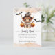Um pouco de bu está quase a chegar! Este adorável cartões de agradecimentos de orçamento apresenta a vaca Halloween com lanternas de jack o', morcegos voadores e salpicos de cor laranja.
