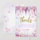 O design apresenta cores pastéis como lavanda, verde menta e rosa bebê, adornado com flores de wisteria suaves e borboletas divertidas. Esses elementos criam um sentimento suave e mágico. O convite apresenta as palavras "obrigado" em letra de glitter dourado brilhante, adicionando um toque de brilho e diversão. Este design simples, porém encantador, é perfeito para uma celebração de aniversário alegre como 1º aniversário, 7º aniversário e mais.