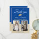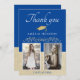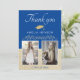Cartões de agradecimentos de Graduação de Foto do Ornamento Dourado 2 Azul Elegante Russo. Ornamento de ouro elegante em fundo azul e bege rústico. Personalize com o nome do formando, ano de graduação, adicione 2 fotos de formando - você pode usar antes e depois das fotos. Adicione a sua mensagem no verso. Faça um cartões de agradecimentos para um formando de segundo grau, faculdade ou universidade.