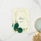 cartão de agradecimento botânico geométrico flores românticas esmeralda verde e folhas douradas. Os detalhes cintilantes são simulados