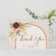 Expresse gratidão sincera em um estilo outonal rústico com este elegante cartão de agradecimento simples da Coleção de Chás de Panela de Outono da Porch and Gable Design. Contra um fundo bege terroso, este design apresenta um arco de creme marfim delineado em laranja terracota rico, coroado por um deslumbrante buquê floral em aquarela. A composição inclui crisântemos de um profundo burgundy, rosas de um suave tom de blush, folhas de outono douradas, capim-pampas seco, folhagem de eucalipto sálvia e penas de faisão rústicas inspiradas no oeste, criando uma estética sazonal calorosa. "Obrigado" aparece de forma proeminente no topo em uma fonte refinada, com texto personalizável abaixo para sua mensagem pessoal. Perfeito para chás de panela de outono, casamentos de outono ou celebrações sazonais, este cartão simples combina perfeitamente com os convites, cartões de RSVP, placas, menus e etiquetas de