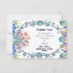 Transmita agradecimentos especiais com um cartão de agradecimento personalizado. O design apresenta flores azuis de hortênsias, lilases e flores e botões de linho azul. Se você gosta desta obra de arte, você pode visitar minha loja floral_colors para itens correspondentes/semelhantes.