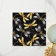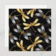 Padrão sem costura com ouro, joias, libélulas brilhantes com asas brilhantes e detalhadas sobre fundo preto. Dourada libélula.