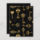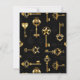 Padrão perfeito de chaves antigas, douradas e silhuetas em fundo preto.