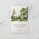 Casamento temático da natureza, obrigado cartas com uma ilustração de árvores verdes em uma montanha de neblina distante. Um cartões de agradecimentos rústico para casamentos de montanha.