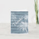 Este design de cartão de agradecimento temático de praia apresenta uma sobreposição de palmeira em um fundo de madeira rústica em tons de azul e branco.