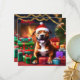 Esta imagem destaca o espírito de feriado com o Staffy num chapéu de Papai Noel, rodeado de presentes e decorações de Natal, pronto para espalhar um pouco de alegria.