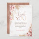 Cartão de agradecimento para chá de bebê de menina floral boho doce com um cabeçalho em folha de ouro rosa falso e vários arranjos florais secos em tons rosados e naturais e com grama de pampas.