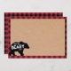 Cartão de agradecimento para chá de bebê do ursinho lenhador de flanela vermelha.