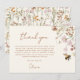 Expresse sua gratidão com nosso Cartão de Agradecimento para Chá de Noiva Terracota com Flores Silvestres. Este cartão, lindamente projetado, captura a essência do charme da natureza, apresentando vibrantes flores silvestres contra um fundo terracota quente.