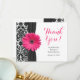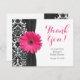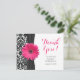 Personalize o texto neste cartão de agradecimento (cartão simples com envelopes) para chá de casamento ou chá de noiva, com estampa chique e moderna em damasco preto e branco, gerbera rosa e fita. Para alterar o texto, use as opções de personalização. Para alterações mais extensas no texto, como mudanças na fonte, cor da fonte, tamanho da fonte e/ou layout do texto, use a opção "personalizar". Embora este cartão de agradecimento com damasco e margarida rosa seja atualmente personalizado para um chá de casamento, ele também pode ser usado para outras ocasiões especiais. Realmente, depende de você. Tudo o que você precisa fazer é alterar o texto. NOTA: Este cartão de agradecimento com gerbera hot pink e damasco preto e branco é um design impresso simples, sem quaisquer adornos em relevo ou 3D.