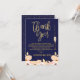 Este cartão de agradecimento de chá de panela apresenta um texto de caligrafia em pincel dourado falso e um elegante copo de champanhe alto sobre um fundo azul-marinho. O design também inclui um arranjo floral parcialmente em aquarela na base do design. O verso do convite também é azul-marinho com um padrão aleatório de bolinhas douradas falsas. O convite de chá de panela do mesmo design está disponível na loja. Este cartão de agradecimento de chá de panela está pronto para ser personalizado.